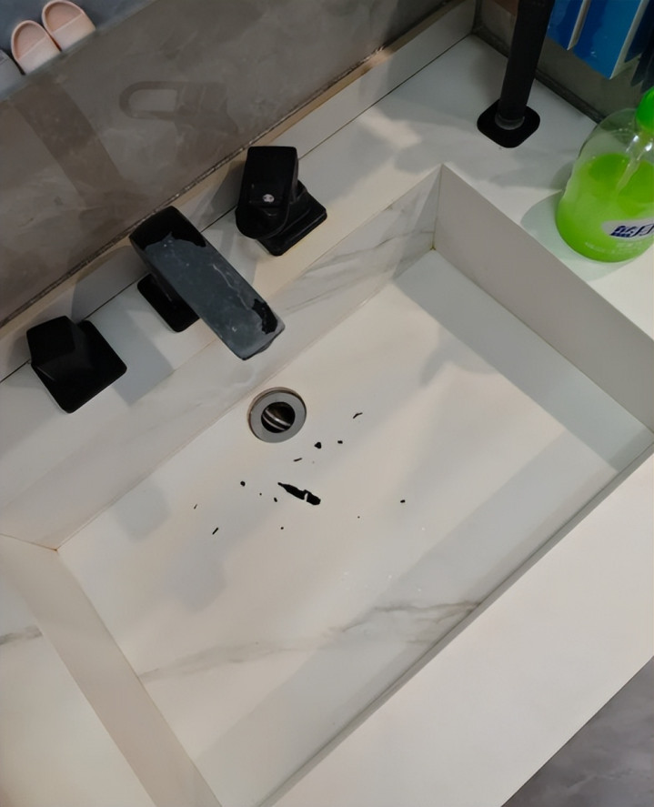 岩板一体盆看起来确实干净利落,但碰到不靠谱的商家,用着用着盆底就脱落了,简直离谱。而且那些直角边角,简直就是污垢的温床,清洁起来让人头大。